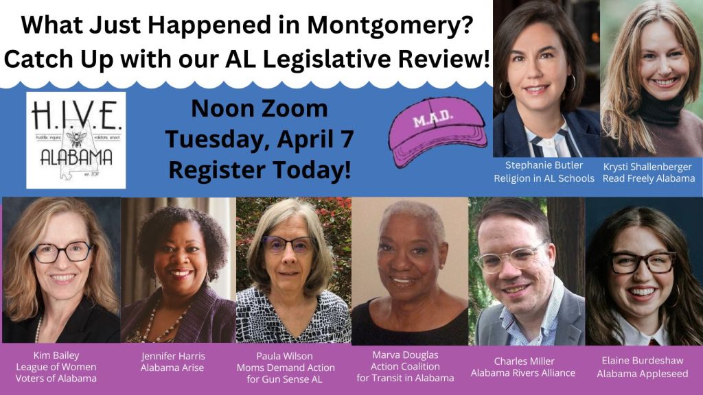 Join us! HIVE Alabama and MAD? Make a Difference will host our sixth annual virtual Alabama Legislative Review Tuesday, April 7th, from 12 to 1 p.m.